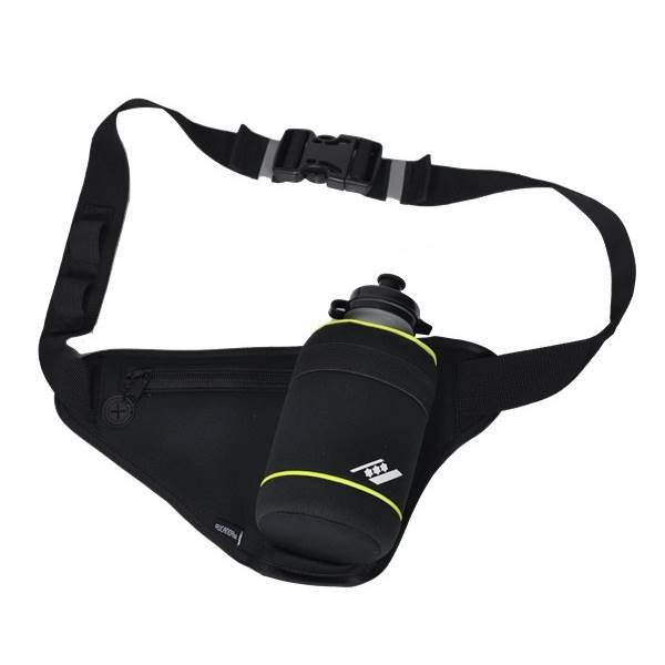 Opasek na běhání obsahuje kapsu na zip a láhev o objemu 500 ml. Je vyroben z 2mm neoprenu a materiálu EVA. Nastavitelný pásek.