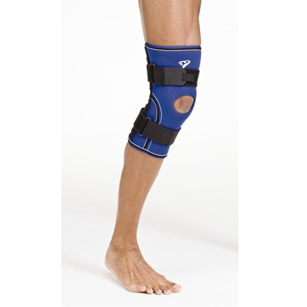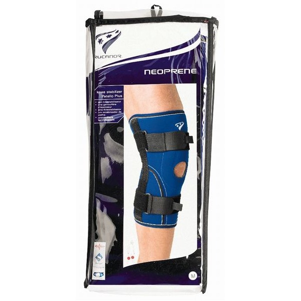 Inovovaný kolenní stabilizer. 4 mm neopren, froté material uvnitř + podpora čéšky. Strany vyztuženy ocelí + horní a spodní řemen se suchým zipem pro lepší stabilitu. Antibakteriální ochrana. 80% gumová pěna / 10% bavlna / 10% nylon.